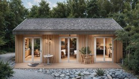 Основная специализация — строительство современных каркасных домов в скандинавском стиле с панорамными окнами.