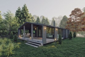Одноэтажный дом в стиле Барнхаус площадью 82м2. Планировка дома продумана до мелочей, чтобы создать уютную и функциональную обстановку.