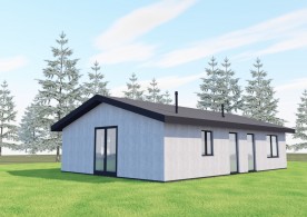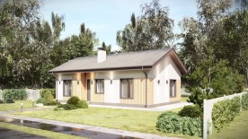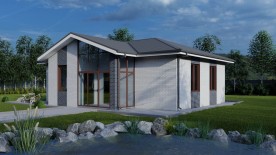 Классический вариант одноэтажного дома из газобетона. Предусмотрены 2 жилые комнаты, кухня-гостиная, санузел и котельная.