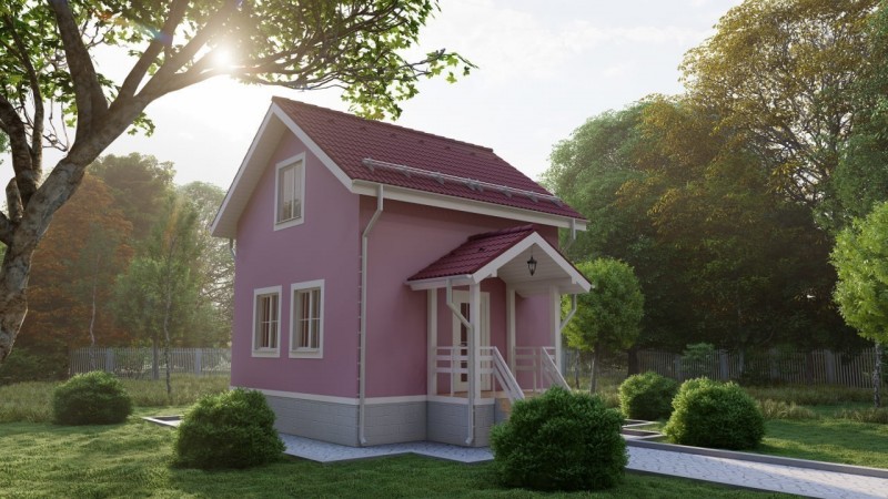 Дом из СИП панелей по проекту «Пион» вполне может стать идеальной дачей или гостевым домом. Первый этаж целиком отдается под своеобразную зону отдыха. С небольшого крыльца входящий в дом человек попадает в тамбур на 2,2 м2, затем кухня-гостиная 15,83 м2. В гостиной расположена лестница на второй этаж и дверь в большой санузел на 6,62 м2. Так же предусмотрено тех. помещение на 4,49 м2.
